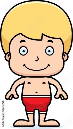 Fototapeta premium Cartoon Smiling Boy Swimsuit