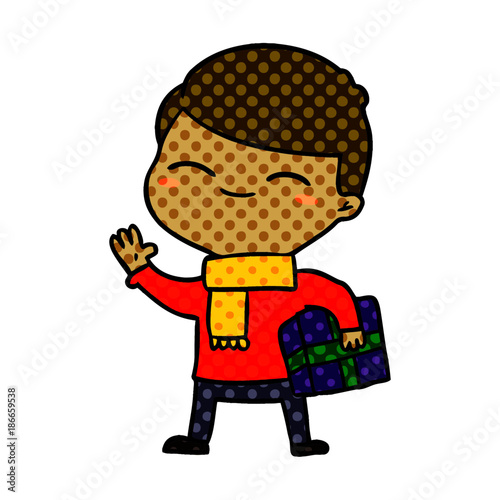 © lineartestpilot, Obraz premium cartoon smiling boy with gift