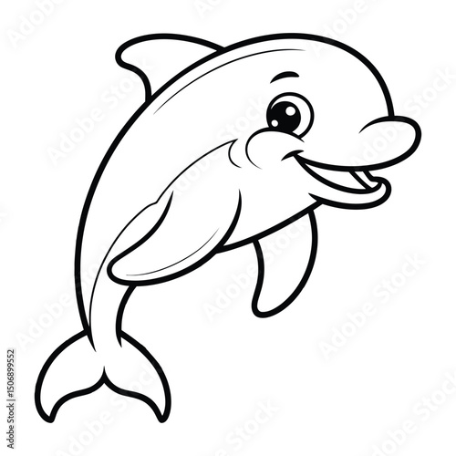 Obraz premium Cartoon smiling dolphin Coloring Page, Silhouette, Vector, Illustration,...