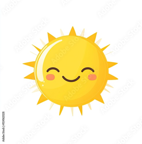 Fototapeta premium Cartoon smiling sun on white background.