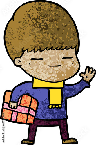 Obraz premium cartoon smug boy carrying present