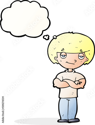 Obraz premium cartoon smug looking man with thought bubble