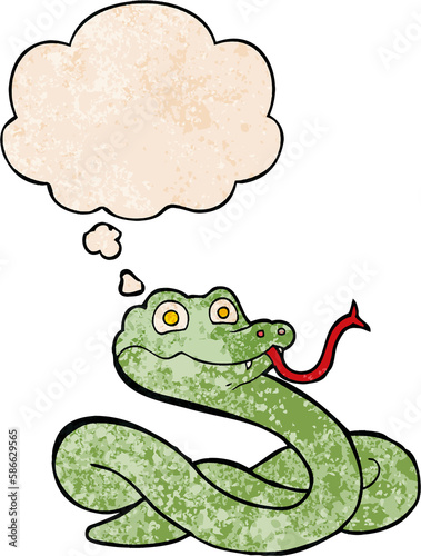 © lineartestpilot, Naklejka premium cartoon snake and thought bubble in grunge texture pattern style
