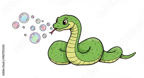 © KHOIRUR, Fototapeta premium Cartoon snake blowing bubbles