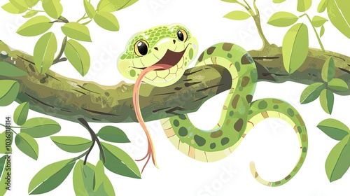 © Palette_Dreams, Naklejka premium Cartoon snake hanging on a tree branch