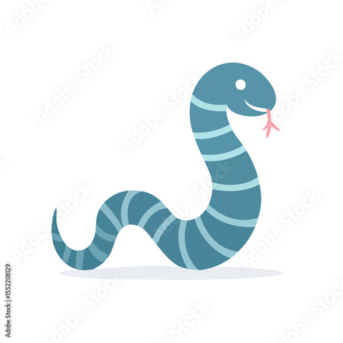 Naklejka premium Cartoon Snake Illustration with Stripes and Tongue Out on Black Background Simple Friendly Animal