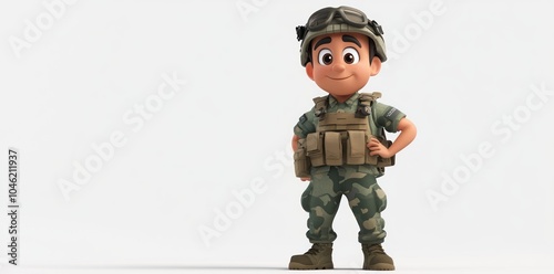 Naklejka premium Cartoon Soldier with Camouflage Uniform and Goggles