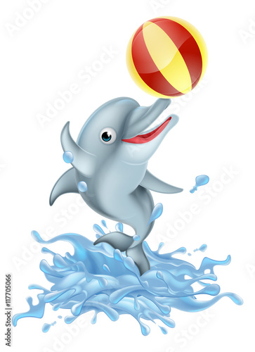© Christos Georghiou, Obraz premium Cartoon Splashing Dolphin Playing with Ball