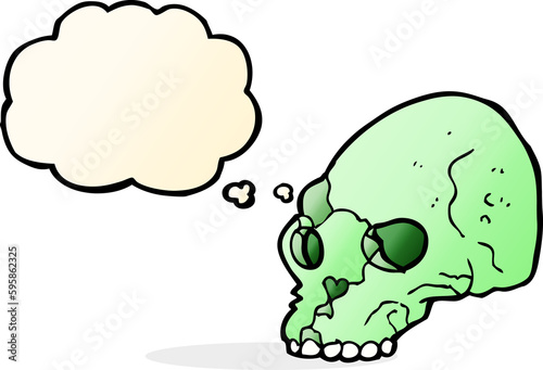 Obraz premium cartoon spooky skull with thought bubble