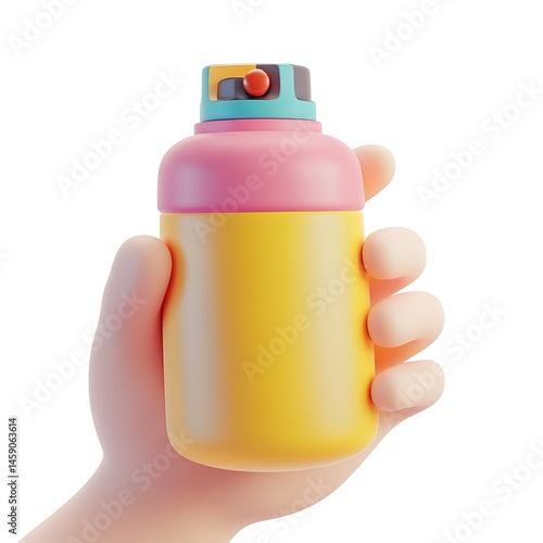Fototapeta premium Cartoon spray can held in hand