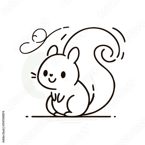 Fototapeta premium Cartoon Squirrel, Line Art Style, Black and White, Cheerful Rodent Illustration