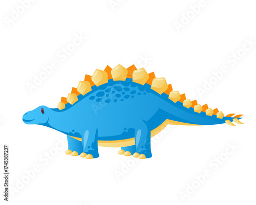 Fototapeta premium Cartoon Stegosaurus Dinosaur with Blue Scales and Orange Plates on...