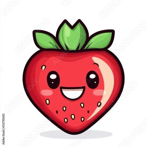 © Subejo, Obraz premium Cartoon strawberry with big eyes and a smile