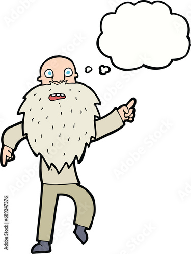 Obraz premium cartoon stressed old man with thought bubble