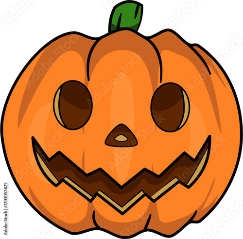 Fototapeta premium Cartoon Style Cute Carved Pumpkin Jack OLantern Face Expression Illustration