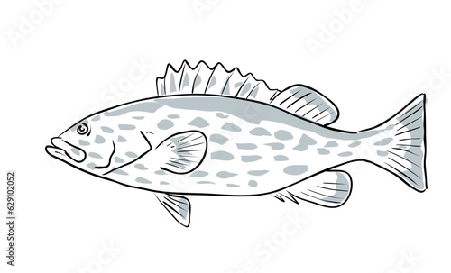 Fototapeta premium Cartoon style drawing sketch illustration of a yellowfin grouper or...