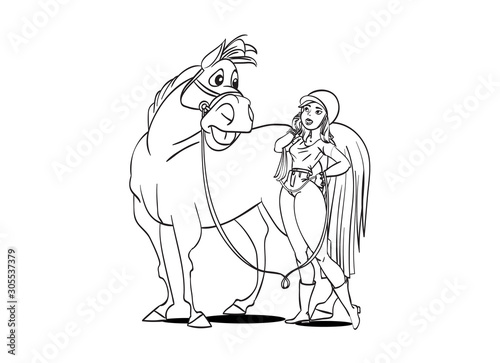 © sergeygerasimov, Fototapeta premium Cartoon style girl with horse.