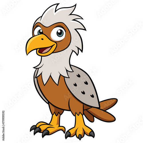 Naklejka premium Cartoon Style Griffon with Brown and Tan Feathers on White Background, Smiling