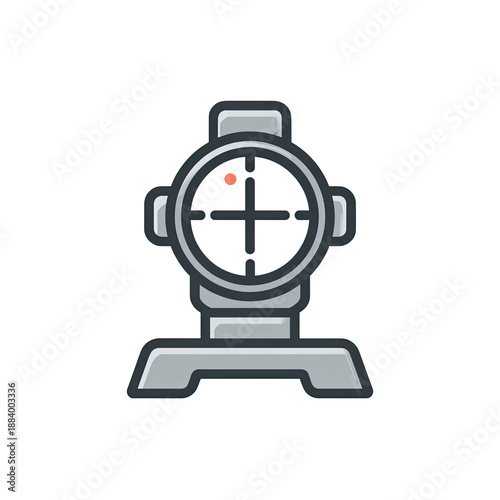 Fototapeta premium Cartoon-style illustration depicts a sight, crosshair, and a red dot on black...