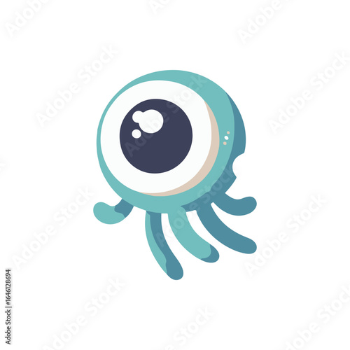 Obraz premium Cartoon-style octopus character with a large eye, floating in a whimsical...