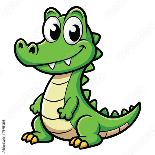 © Dipta, Fototapeta premium Cartoon Style of a Green Crocodile Sitting Isolated on White Background