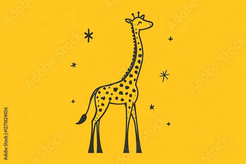 © Inspiration, Fototapeta premium Cartoon-style outlined giraffe with its long neck stretched.