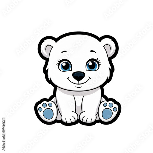 Fototapeta premium Cartoon style polar bear sticker with expressive blue eyes, gentle smile, and...