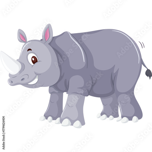 Fototapeta premium Cartoon Style Rhinoceros With Transparent Background And White Horn And Pink Ears