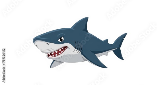© Lavanya, Obraz premium Cartoon style shark with sharp teeth on plain background illustration
