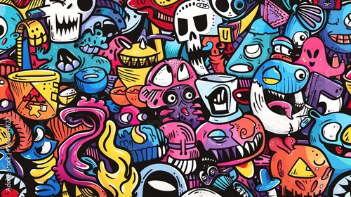 Fototapeta premium Cartoon style street art pattern wallpaper