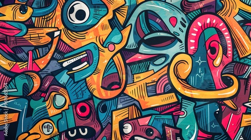 © pixelwallpaper, Obraz premium Cartoon style street art pattern wallpaper