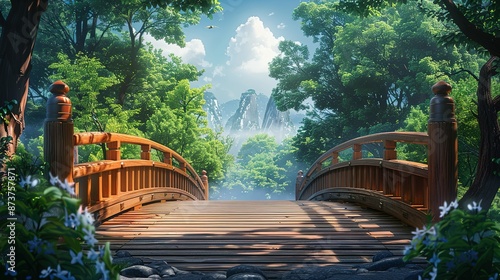© Helens, Obraz premium Cartoon Style Wooden Bridge Design