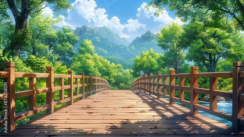 © Helens, Obraz premium Cartoon Style Wooden Bridge Design