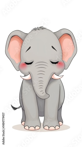 © dmmarychev, Naklejka premium Cartoon styled sad elephant baby isolated on white