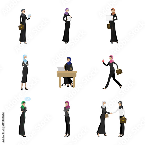 © naum, Fototapeta premium Cartoon Successful Arabic Businesswoman characters