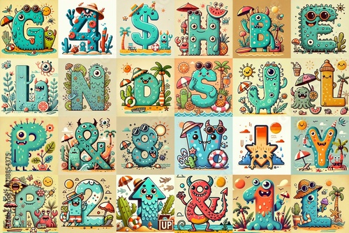 © vector_master, Obraz premium Cartoon Summer season Monsters Lettering Typeface. AI generated illustration