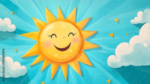 Fototapeta premium Cartoon Sun with Triangular Rays