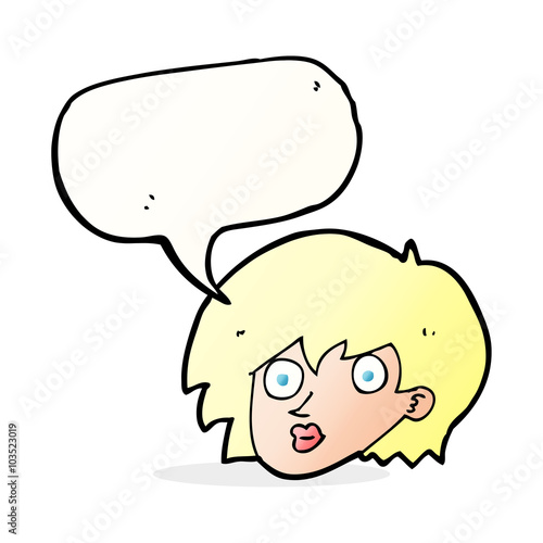 © lineartestpilot, Fototapeta premium cartoon surprised female face with speech bubble