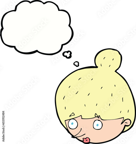 © lineartestpilot, Obraz premium cartoon surprised woman's face with thought bubble