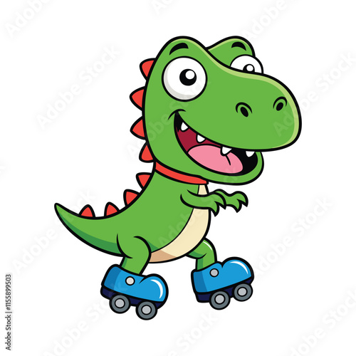 © TRTASFIQ, Naklejka premium Cartoon T-Rex Dinosaur on Roller Skates
