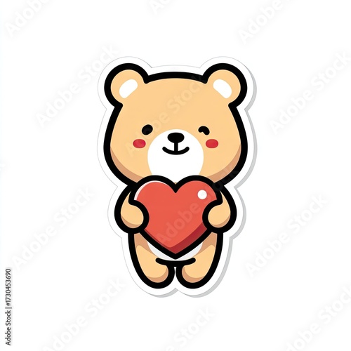 © bayu, Obraz premium Cartoon teddy bear character holding a heart symbol on white background