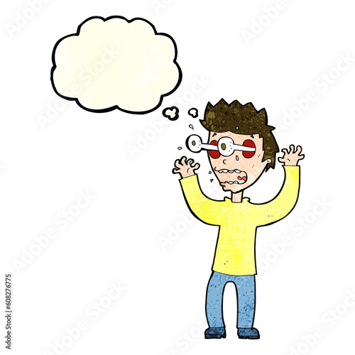 Fototapeta premium cartoon terrified man with thought bubble