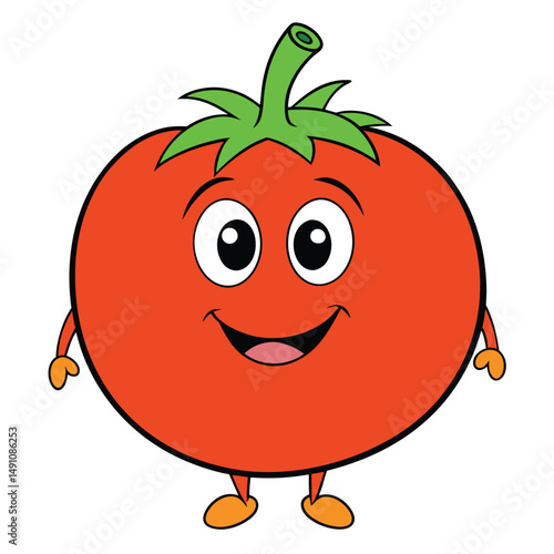 Fototapeta premium Cartoon Tomato Character with Smiling Expression and Green Stem