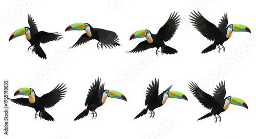 Naklejka premium cartoon toucan bird in flight against white background animation sequence for illustration or design