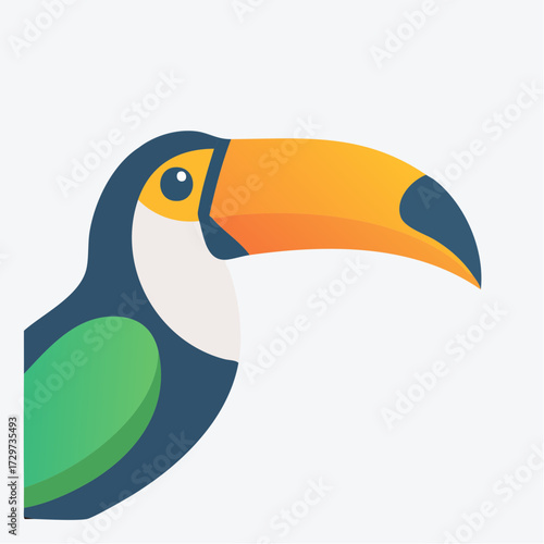 © Syafa, Naklejka premium Cartoon Toucan Bird Profile View With Orange Yellow Beak And Green Wing Isolated On White Background
