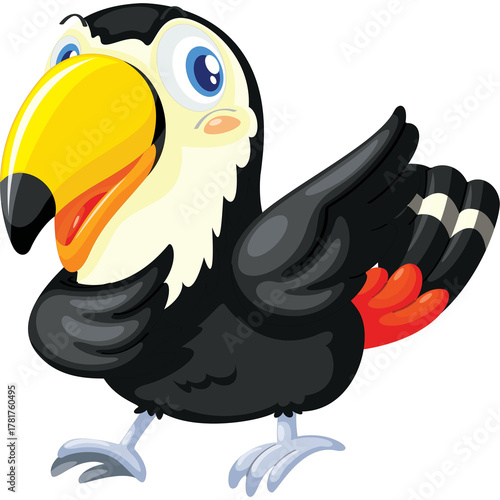 Naklejka premium Cartoon Toucan Bird With Large Yellow Beak Standing On White Background With...