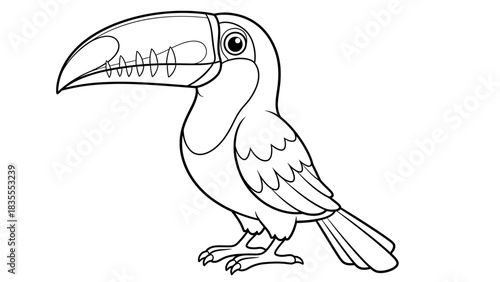 Obraz premium Cartoon Toucan with Large Beak Line Art Illustration