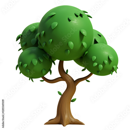 © Mahfuz, Naklejka premium Cartoon Tree with Round Canopy, Ideal for Educational or Kids' Projects