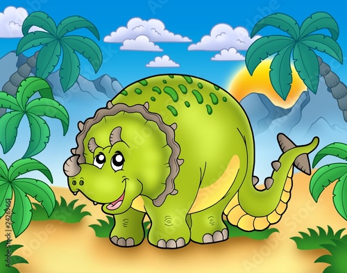 © Klara Viskova, Naklejka premium Cartoon triceratops in landscape