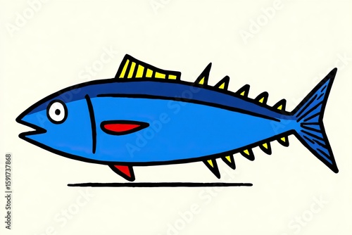 Obraz premium Cartoon tuna fish with blue body, isolated on cream background